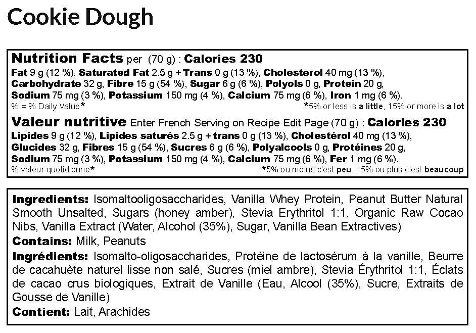 Katy's Klean Bar brings you the Cookie Dough Klean Bar! Replace that comforting taste of freshly made cookie dough, with a protein packed cookie... complete with cacao nibs.